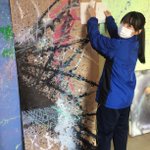 イラスト美術部、コップの縁に色を塗りスタンプのようにして押し、光に反射したような色づけをして「シャボン玉」を完成させました。 最初は簡単だと思ってけど、色の配色やバランスが意外に繊細で難しかったけど、やりがいがあった面白かったと言っていました #日星高校 #美術部 #BubblePainting