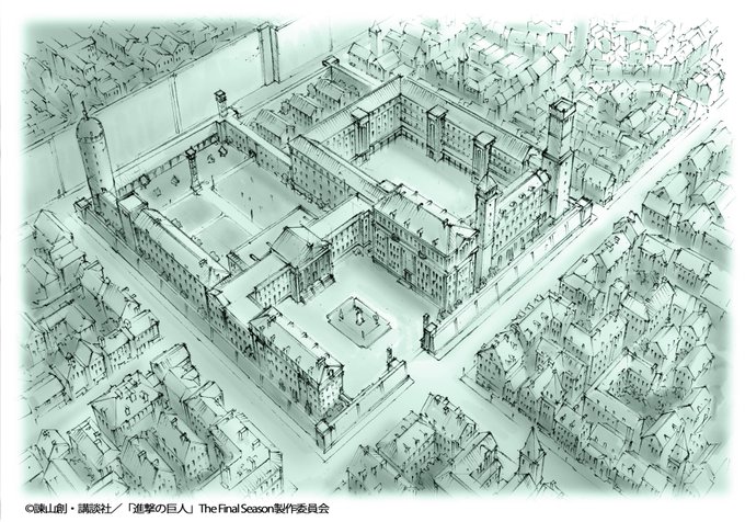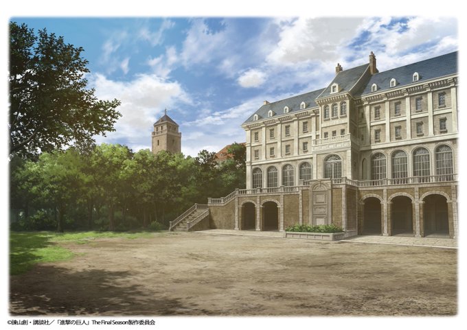 本日の一枚。改^^【進撃の巨人 The Final Season】美術設定「マーレ軍本部 全景」です。#進撃の巨人 #shingeki #草薙 #kusanagi #アニメ #anime #art #backgroundart #イラスト #イラストレーション #アート #illustration #美術