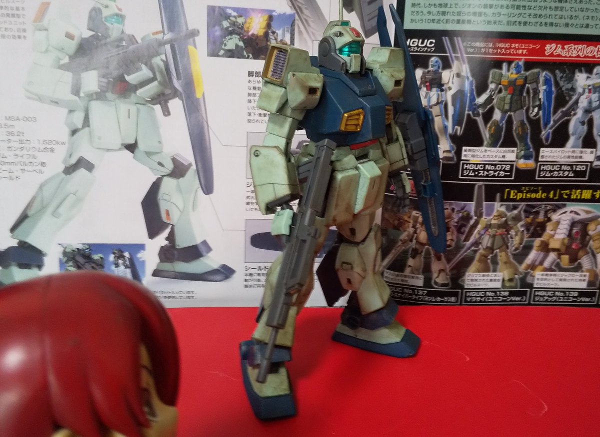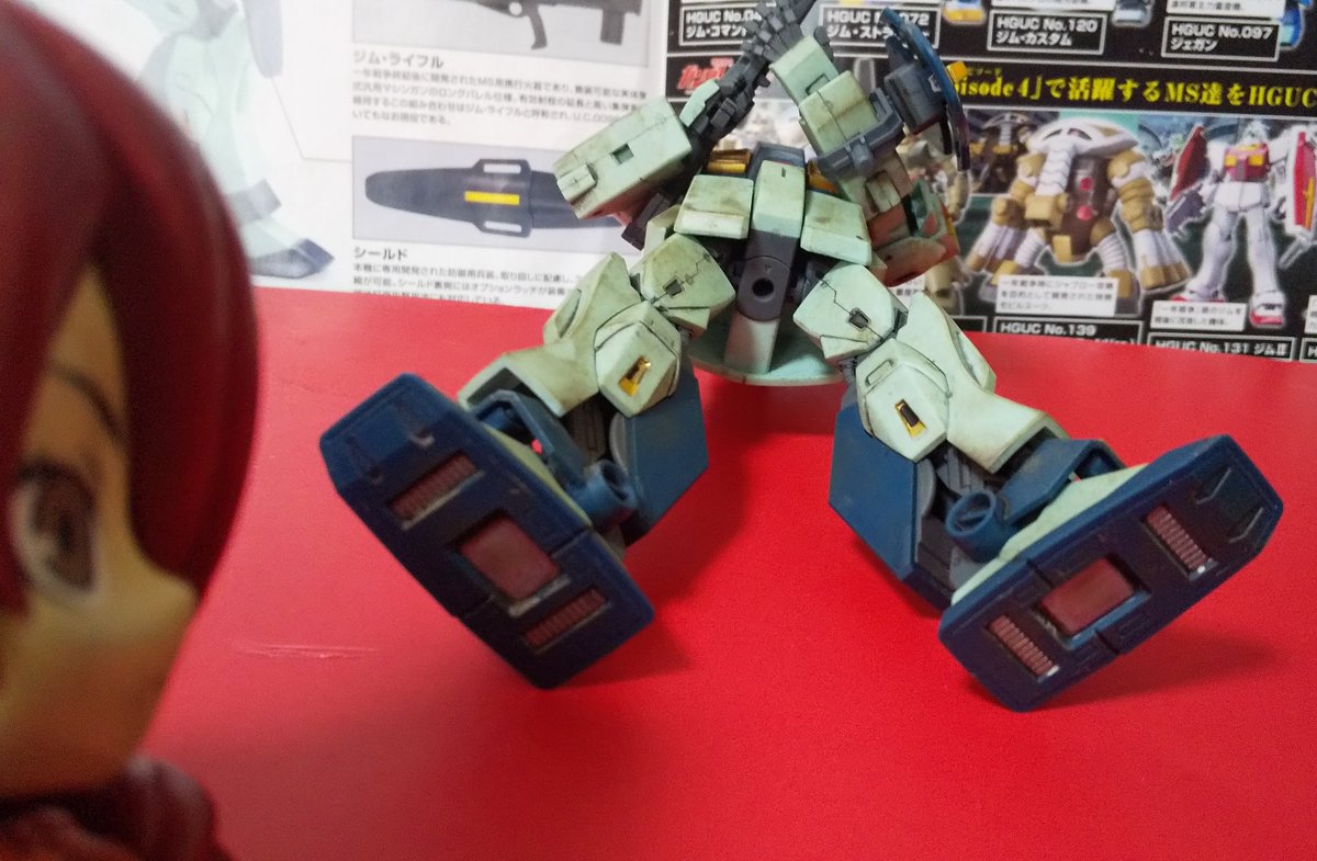 :終わって帰宅して #ネモ 🦄を上げるぞ。今年初のウェザリングを加工したぞ。部分塗りも結構大変だった。💦射撃武器は0083のジムのアサルトFARMS型ライフルしか付属してないぞ。でもこれでも格好いい!下に続く。 #ガンプラ #ガンプラの画像貼るとRTされると聞いて #美鶴のガンプラ完成品