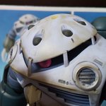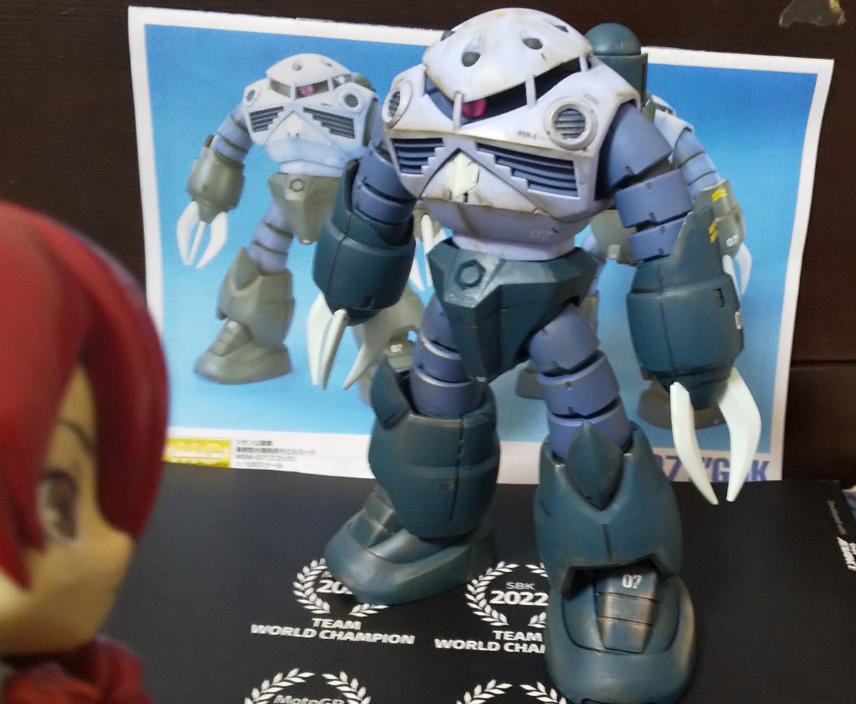 乾燥したから完成だ。MG #ズゴック をね。スミ入れ、ウェザリング、付属のデカールとMシールをやりモノアイにはガイアカラー蛍光クリアピンクを使用したよ。塗装剥げはいいね。下に続く #今月作ったプラモ晒そうぜ #ガンプラ #ガンプラの画像貼るとRTされると聞いて #美鶴のガンプラ完成品