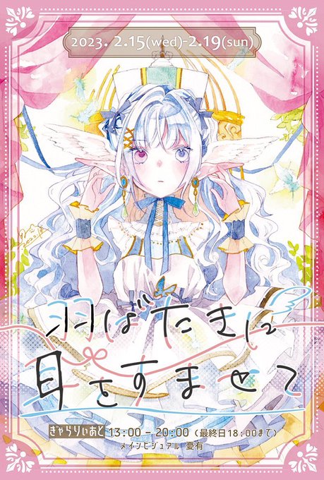 【お知らせ】 「#羽ばたきに耳をすませて」 🕊2月15日(水)-19日(日) 🕊13:00-20:00(最終日 18時まで) 🕊ぎゃらりぃあと2階(窓) (@Ato10Gallery) 赤井蒼さん(@akai0323)の共同企画展に新作2点+ドローイング2点、ポスカで参加します! メインビジュアル担当させて頂きました!よろしくお願いします🌸