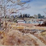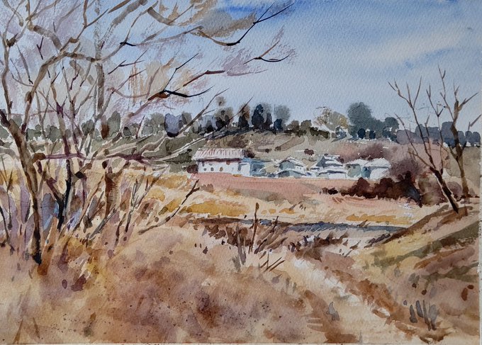風の強い日、河川敷でのスケッチでしたが日差しは暖かでした。#野外スケッチ #透明水彩画 #水彩画 #写生 #羽村 #watercolor #outdoorpainting #watercolour #hamura #aqurelle