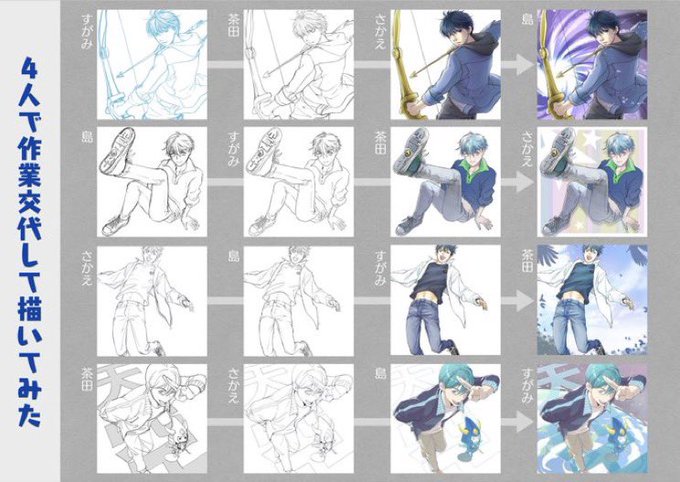 #4人で下書き線画塗りを交換して絵を完成させる #羽柴当麻誕2022エアネップリ #羽柴当麻誕生祭2022 お友達の絵描き4人で遊びました🏹 進捗飛び交う度に、脳がバグって楽しかった!www 担当部分①下描き、ペン入れ