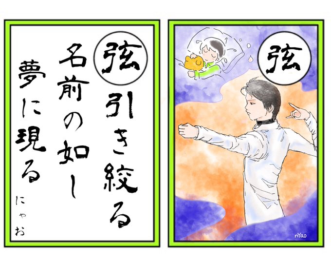 羽生結弦選手プロ転向1周年おめでとうございます😂 その弓の先にある未来🏹 これからも一緒に✨ 小海途良幹さまのお写真参考にこちらの絵札と読み札作成させていただきました🙏 #HANYUYUZURU #羽生クラスタ漫画研究部 #祝プロ転向1st記念日 twitter.com/kotonohanyu/st…