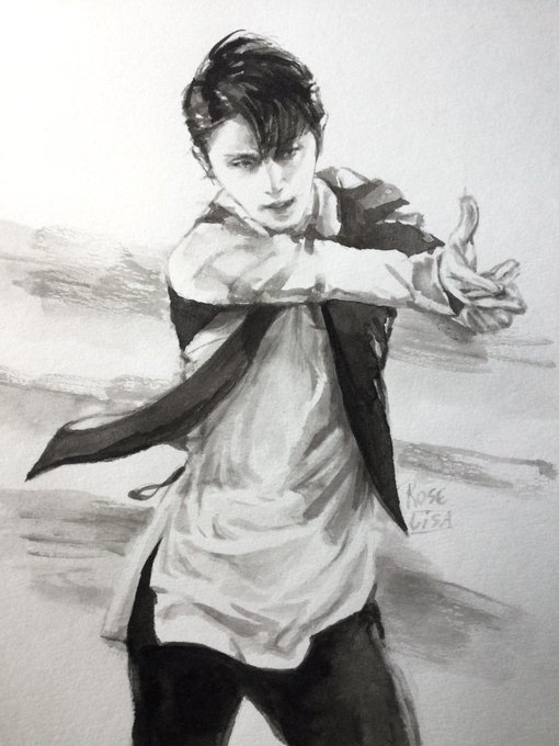 貝塚太一さんのお写真から描かせて頂きました ゆきみさんの墨絵に触発されて 墨汁と筆で描いてみました ぼかしもない(出来ない)塗りたくり😅どんまい💪‼️ #羽生結弦 #YuzuruHanyu𓃵 #貝塚太一 #FaOI2023宮城 #羽生クラスタ絵画部