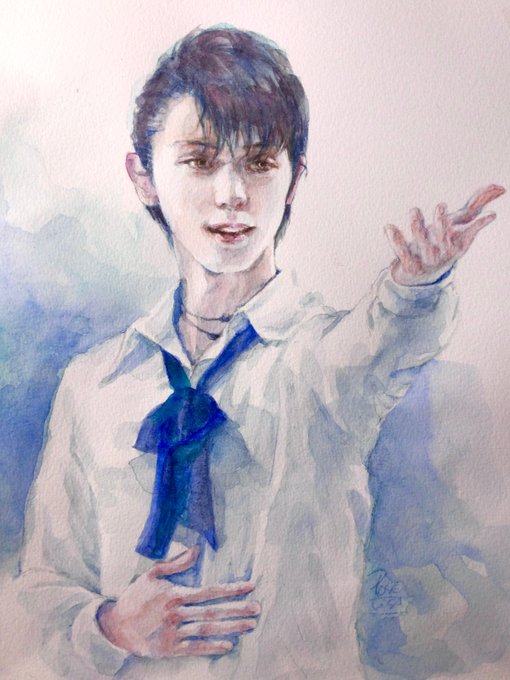 お暑うございます #羽生結弦 #FaOI2023 #HANYUYUZURU𓃵 #yuzuruhanyu #羽生クラスタ絵画部 #水彩画 KISS &CRYのお写真から描かせて頂きました