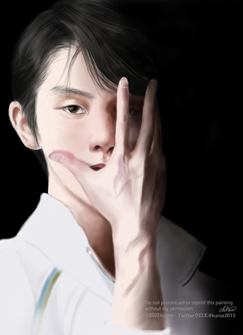 KISS&CRYのポスターの中で一番心を惹かれたお顔 最初吸い込まれそうな目とバラの花弁のような口に惹かれ、見るほどにこの目が語るものが変わっていく、不思議なお写真でした。 カメラマンさんがわかりませんでした。感謝して描かせて頂きました。 #羽生結弦さんが今日も元気で幸せでありますように