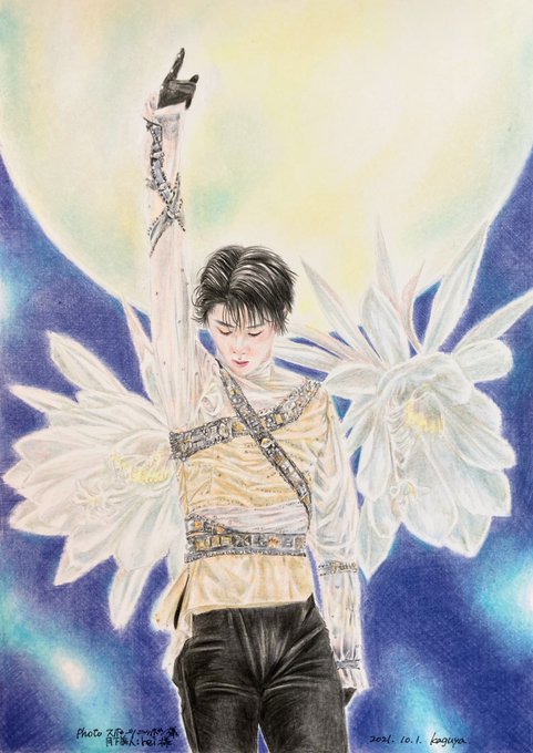 あのニースの日から10年…✨ 初めてカラーで描いたロミオさまを お写真はスポニチさまと月下美人の花はreiさんより感謝して描かせていただきました🙏 #YuzuruHanyu𓃵 #羽生結弦選手が大好き #色鉛筆 2021.10.1の再掲です🍀
