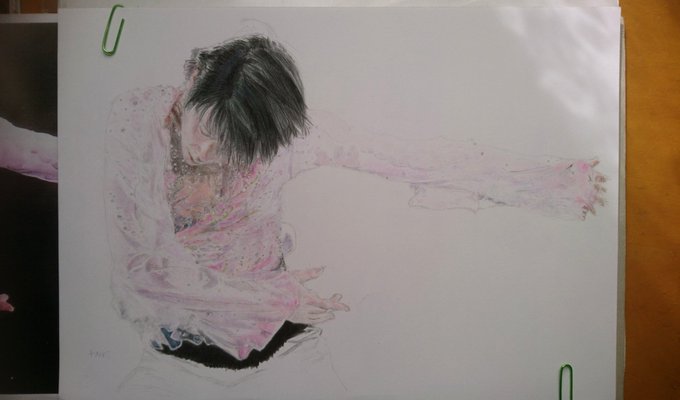 なんとかここまで進んだ朝。 これから恐ろしい程に黒が無くなっていきます…。 #羽生結弦 #羽生クラスタ絵画部 #色鉛筆画 #Coloredpencildrawing #YuzuruHanyu #羽生結弦選手の怪我が治りますように #羽生結弦選手の夢が叶いますように