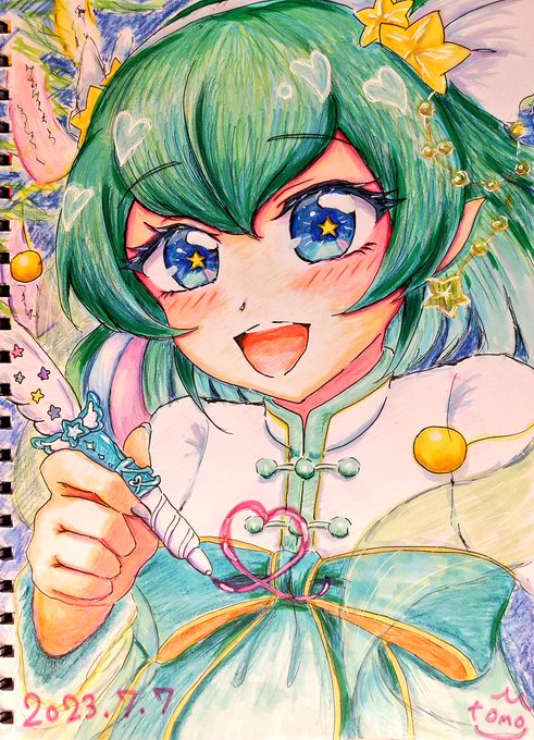 💚キミは何をお願いするルン?💚 #羽衣ララ生誕祭2023 #キュアミルキー生誕祭2023 およー!! ルンちゃんおたおめ\(^-^)/🎉 0時にお祝い間に合ってよかった💕 ララちゃん大好きルンーーー!!! #precure #スタプリ #羽衣ララ #七夕 #プリキュア #アナログイラスト