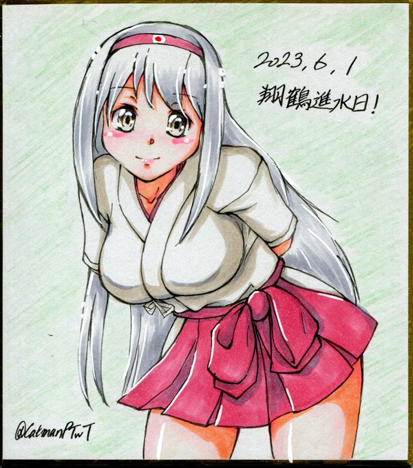 #翔鶴進水日 #艦これ版深夜の真剣お絵描き60分一本勝負 #艦これ版真剣お絵描き60分一本勝負_20220601 イベント出撃前のピリピリとした空気の中 翔鶴が目が合ったのに気づいて 手を振ってくれた それだけで心が溶けるような感じがした