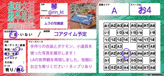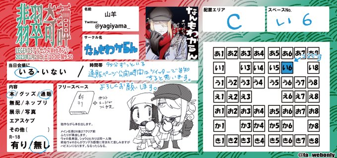 1月28日(土)LAwebオンリーにサークル参加します! セキ中心ほのぼの(?)漫画です エリアA【あ8】 新刊 A5/56p/500円+送料 サンプル pixiv.net/artworks/10466… BOOTHの匿名配送を使って頒布する予定です よろしくお願いします #翡翠奇譚2023
