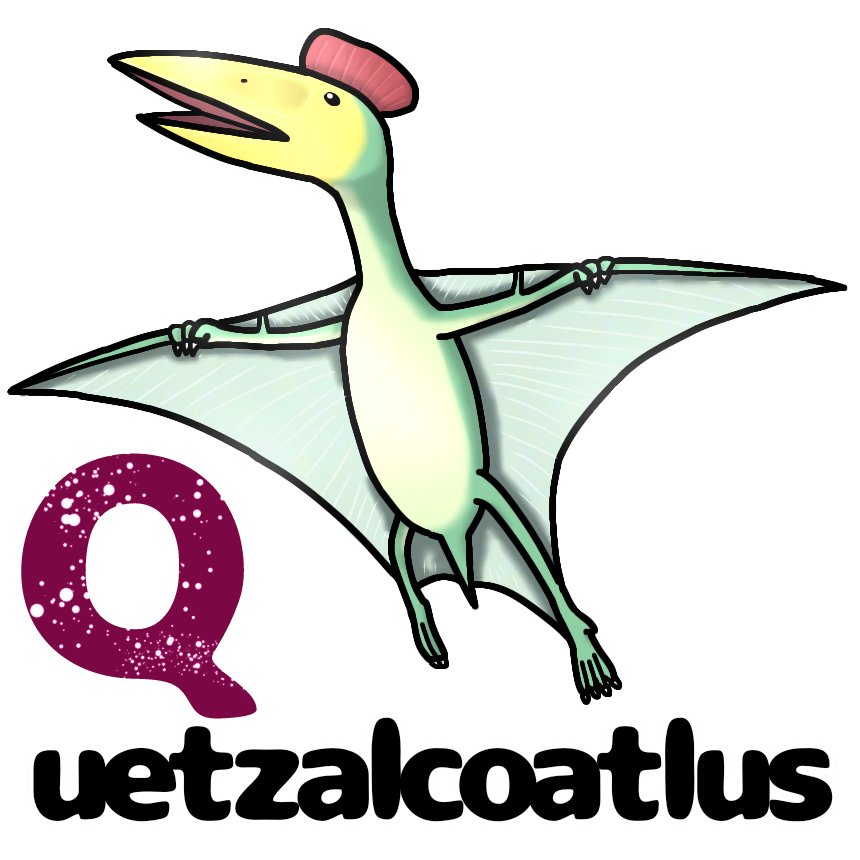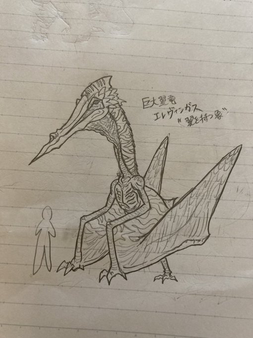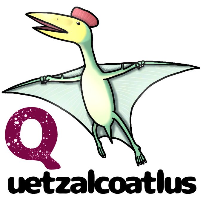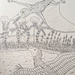 恐竜イニシャルQは #翼竜 にしてみた。 #ケツァルコアトルス です。空をとぶ生き物史上最大級おおきいです。翼開長10m以上、これは小型飛行機をこえる。ケツァルコアトルスの頭文字をまちがえてKと思っていましたので、下書きはとても前にかいてありました。#quetzalcoatlus #古生物 #イラスト