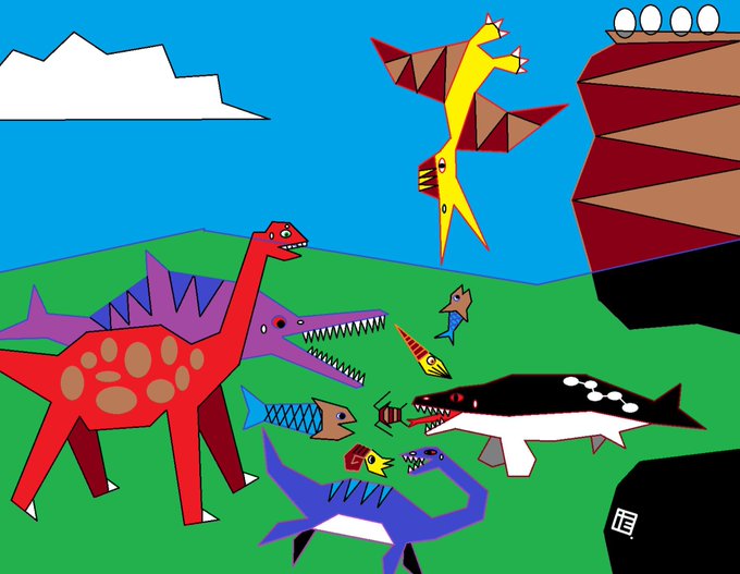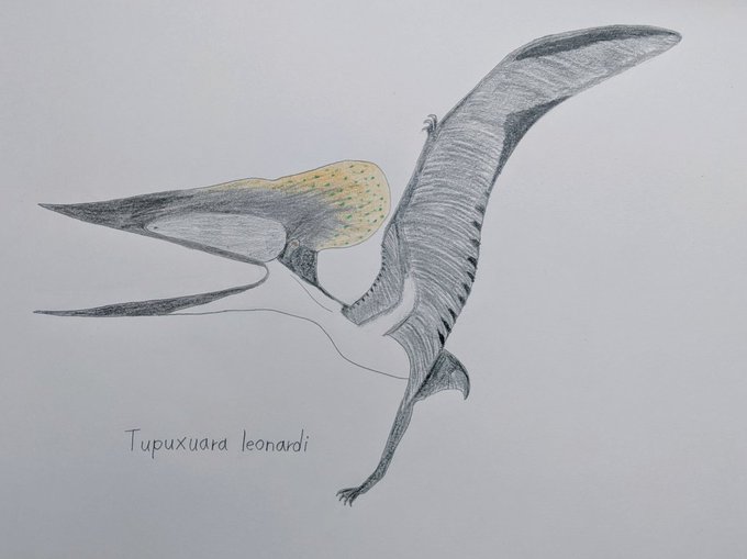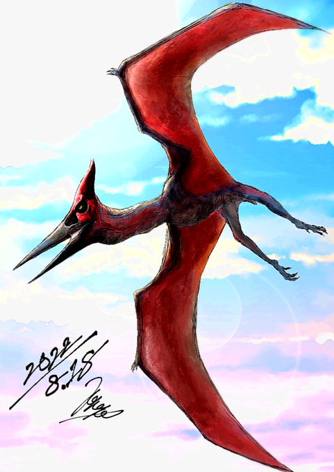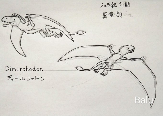 ランフォリンクス エウディモルフォドンと同じタイプの翼竜であり、頭が小さく首が短く、尾が長い。しかし、翼を広げた大きさは彼の二倍の2mはあった。 歯の形や胃の内容物から、魚食だったことがわかっている。 #絵描きさんと繋がりたい #クリーチャー #イラスト #翼竜 #生き物 twitter.com/thRGxguxlSe0…
