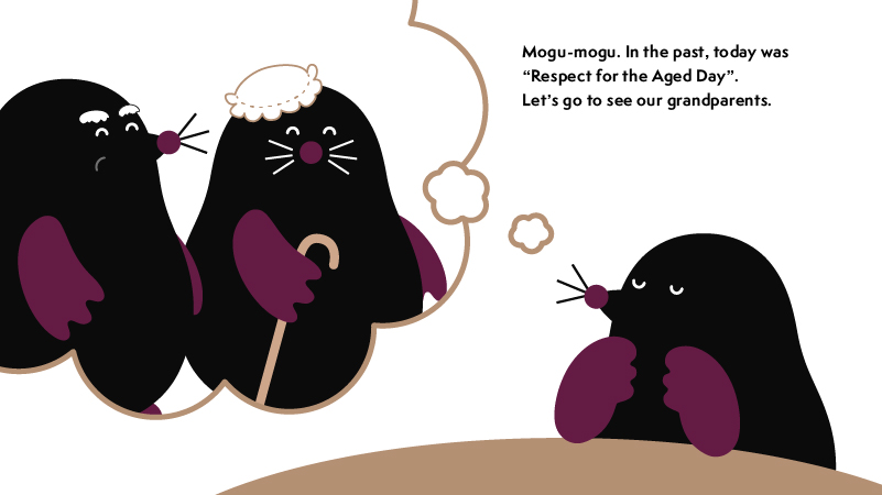 モグモグ〜!昔は今日の日付が「敬老の日」だったんだって。おじいちゃん、おばあちゃんに会いに行こうかな。 #老人の日 #モグハル #Moguharu #もぐら #キャラクター #character #イラスト好きな人と繋がりたい #イラスト #illustration #デザイン #mascots