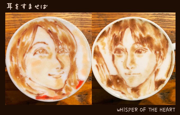 ラテアート【耳をすませば】 映画「耳をすませば」を観させて頂きました! 月島雫役の清野菜名さん、天沢聖司役の松坂桃李さんをラテアートで描きました。 (作成動画:youtu.be/T2XuNMLHPkM) 監督の愛情あふれる、見る年代によって様々な共感をおぼえる作品だと思います! #耳をすませば