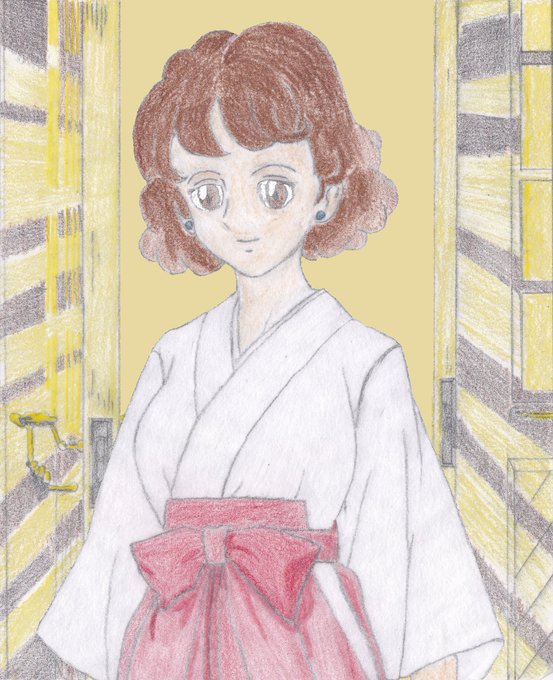 #巫女の日 #芸術同盟 #耳をすませば #耳すま #ルイーゼ #ジブリイラスト #ジブリファンアート #ルイーゼ着てくれたのかシリーズ 聖司の祖父、西司朗氏が目を覚ますと、巫女服を着たルイーゼさんが現れた……