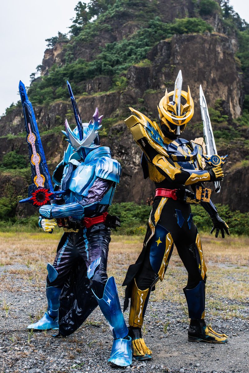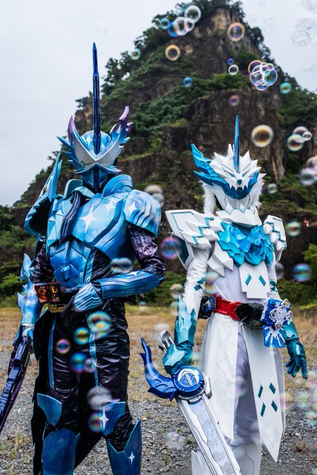 キユリノくん(@3821_kiyurino )と🙏 1号2号最強フォームで並べた✨✨✨ 二人の何気ない会話からここまで来れて本当に良かった🙏改めてタテガミ完成おめでとう(*´ω`*)また一緒に撮ろうね 撮影:ぐれさん(@osa_gekka ) シャボン玉:カタニキ(@kataageMK2 ) #聖剣の下に集いし剣士達