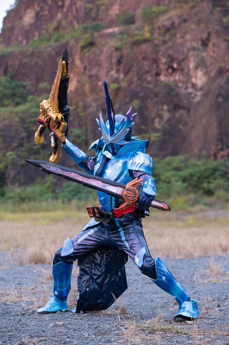 『刃王必殺読破! 』 劇場版みたいなカットになってて感動しました……😭😭😭 撮影:ししまいさん(@ura_shishimai45 ) ポーズ指導:あめ虎くん(@NanaRein8859 ) #聖剣の下に集いし剣士達