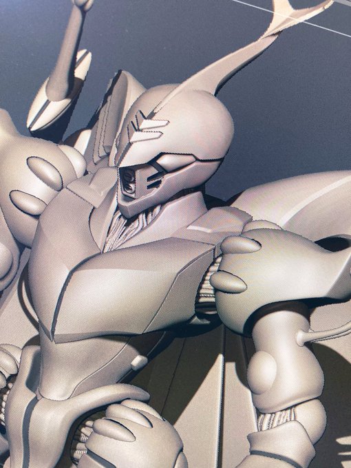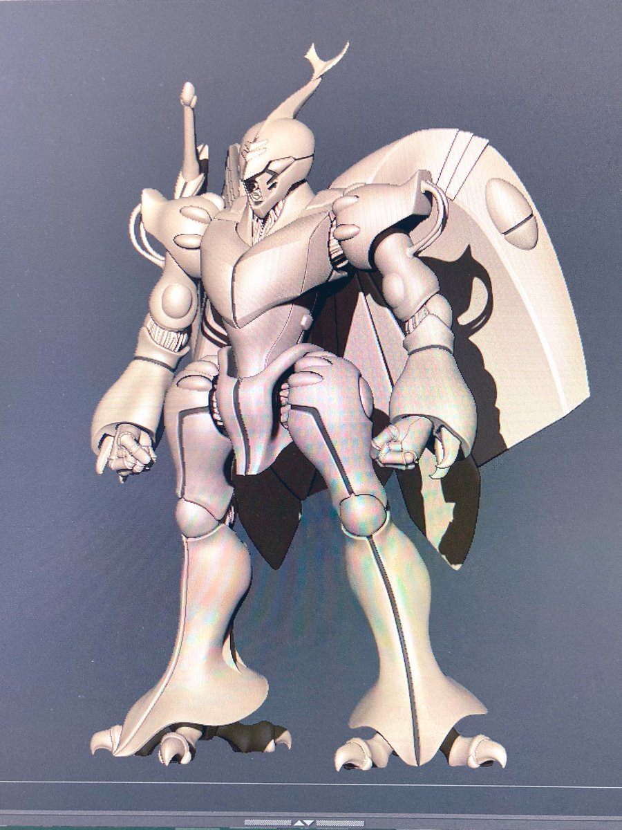 とりあえずパーツが揃ってラフはできた感じ。まだローポリです。結局バランスは自分好みのラインに落ち着いてしまった……。でも、できるだけディテールは設定画拾ってます。 #聖戦士ダンバイン40周年 #zbrush