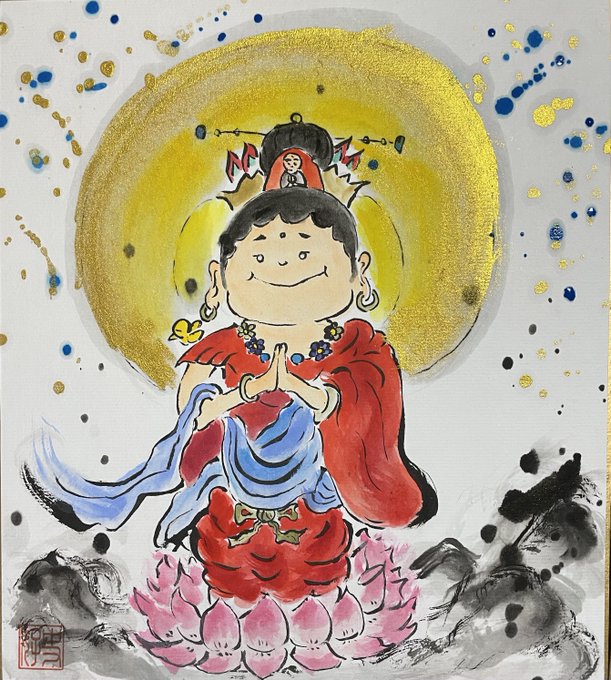 グリズリーパンダさんの聖観音様完成しました! ずっとイメージしていたインド風の褐色肌仕上げに。かなり好みの感じに出来ました♪ 頬の赤みや花弁のグラデは100均のチークを塗ってみました。 キットもめちゃめちゃ作りやすかったです~(*´Д`*) #グリズリーパンダ #聖観音 #模型サークルGMR