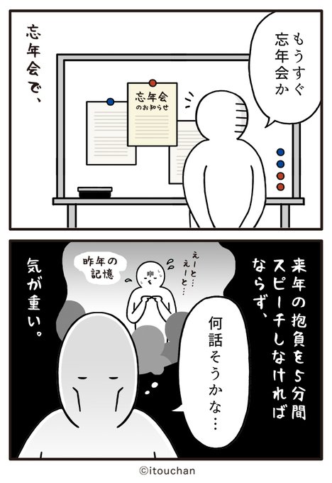 #マイナビニュース さまの「職場の謎ルール」という企画にて2コマ漫画を描かせていただきました✌️ news.mynavi.jp/series/nazorul… 第12回目は「もうすぐ忘年会」毎年恒例の気が重くなる出し物とは? 😲 #いとうちゃん #厭うちゃん #2コマ漫画 #職場の謎ルール #漫画が読めるハッシュタグ #忘年会