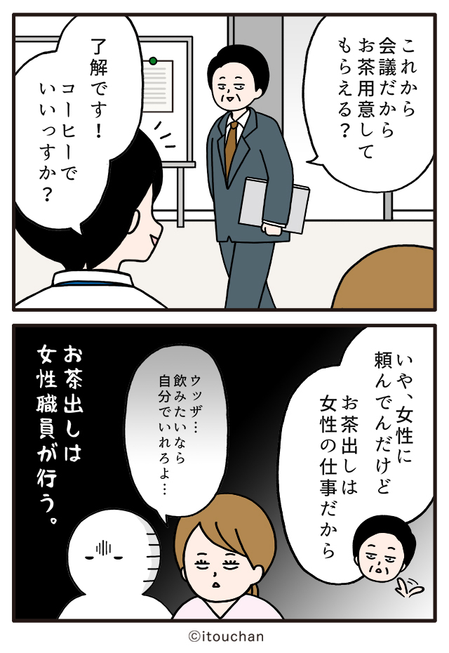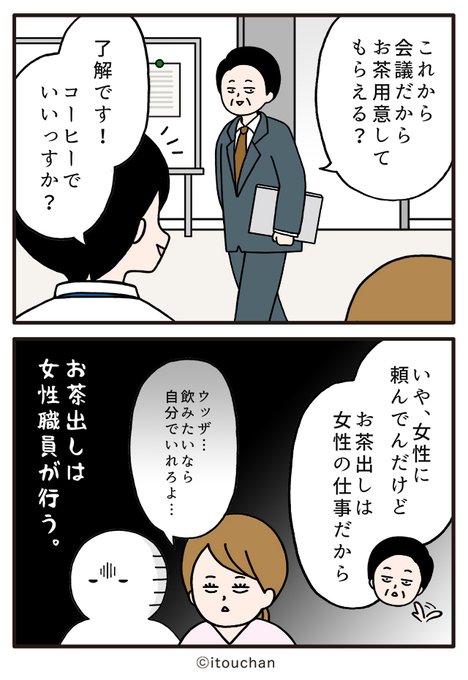 #マイナビニュース さまの「職場の謎ルール」という企画にて2コマ漫画を描かせていただきました✌️ news.mynavi.jp/series/nazorul… 第22回目は、上司からの「お茶用意して」に男性社員が対応しようとしたら…😲 #いとうちゃん #厭うちゃん #2コマ漫画 #職場の謎ルール #漫画が読めるハッシュタグ #お茶出し