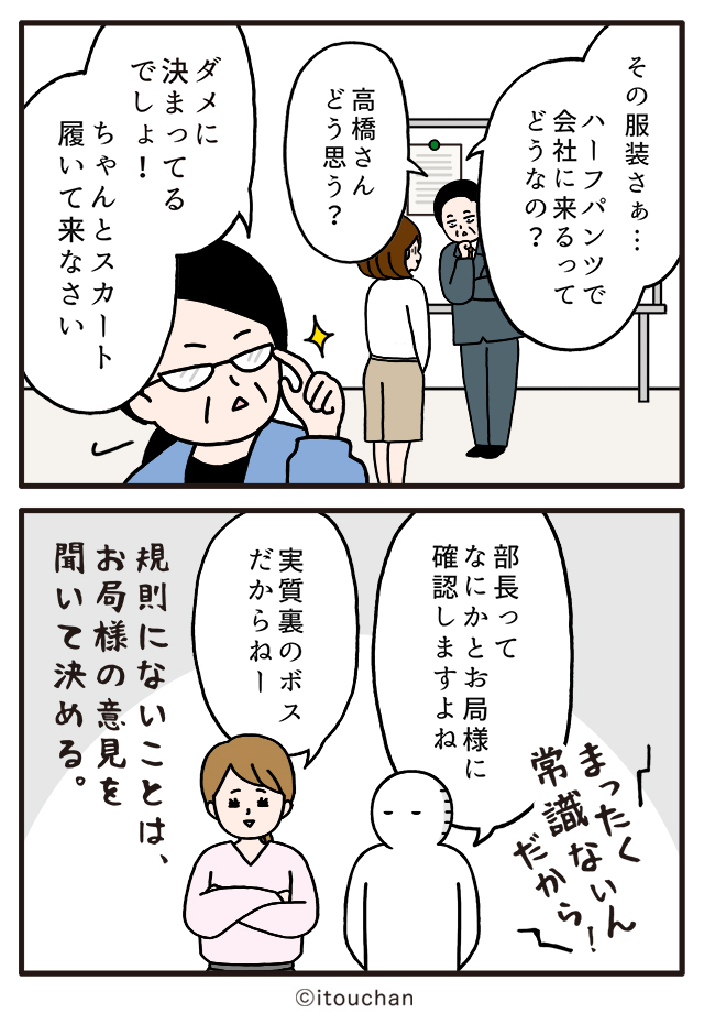 #マイナビニュース さまの「職場の謎ルール」という企画にて2コマ漫画を描かせていただきました✏️ news.mynavi.jp/series/nazorul… 第44回目は👉「暑苦しい…」夏の通勤服に関する、謎の縛りルール #いとうちゃん #厭うちゃん #2コマ漫画 #職場の謎ルール #漫画が読めるハッシュタグ #クールビズ