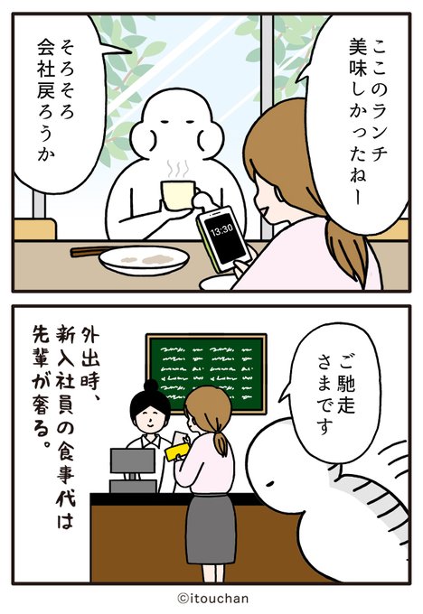 #マイナビニュース さまの「職場の謎ルール」という企画にて2コマ漫画を描かせていただきました✏️ news.mynavi.jp/series/nazorul… 第30回目は、食事代の"支払い"ルール - 新入社員と食事したときのお会計について😮 #いとうちゃん #厭うちゃん #2コマ漫画 #職場の謎ルール #漫画が読めるハッシュタグ
