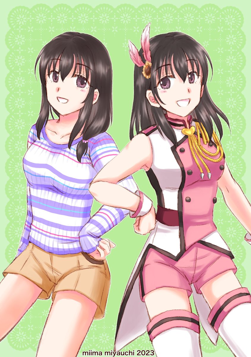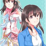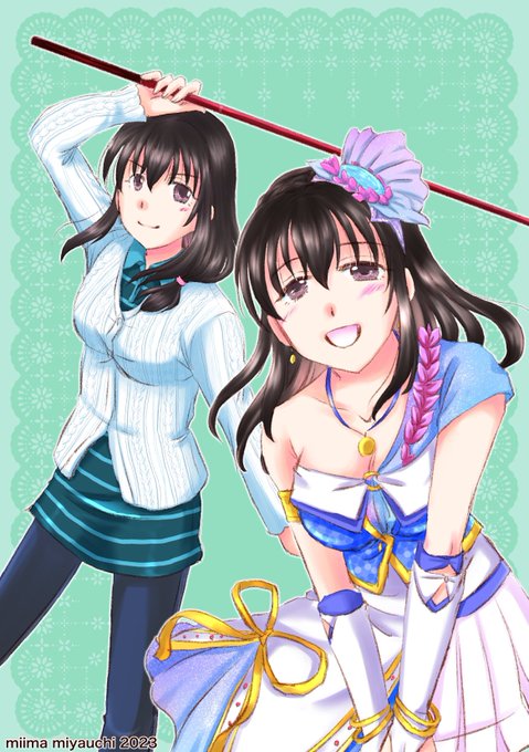 #藤原肇はBIZENのB #SfC予選B のアイドル47名と #藤原肇 のイラストを描き切りました!(途中から線画ですが;)肇さんの今までの衣装を順番に、一緒にお仕事したらというコンセプトです。 投票期間はあと少しとなりますが、ぜひ藤原肇に投票をよろしくお願いします! #StageforCinderella #肇を一に