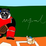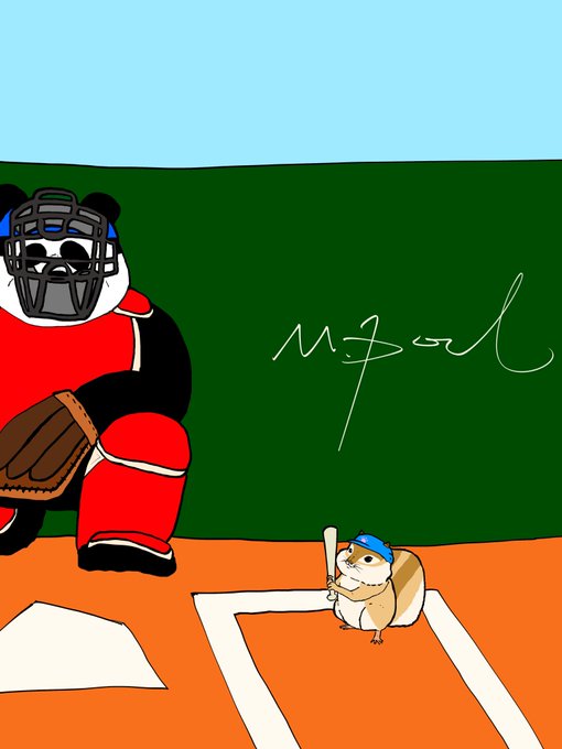 ストライクゾーンがボールより小さいので普通に投げたら全て四球 転がせばバント、更にランナーが盗塁100%成功という恐怖の詰みゲー 過去彼から三振を奪ったのはプロボーラー中山律子先生のみ #肉球アニマルズ #絵描きさんと繋がりたい #イラスト好きな人と繋がりたい
