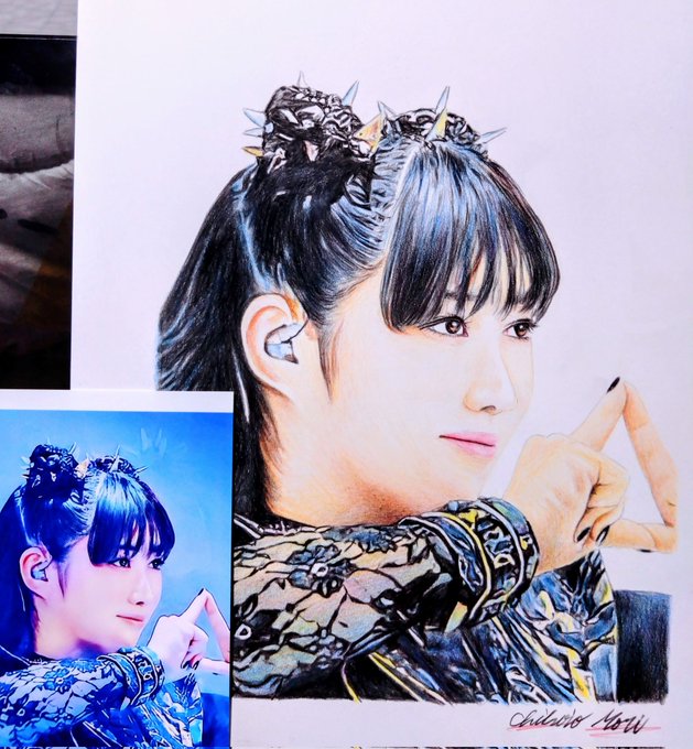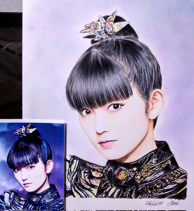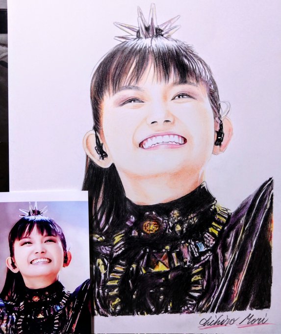 BABYMETALの、SUMETAL. 中元すず香さん🤘 描いた色鉛筆画と、見本にした写真です✨ 絵の依頼承ります お問い合わせは、DMにてご連絡お待ちしています #BABYMETAL #肖像画 #色鉛筆