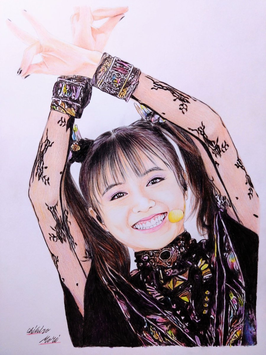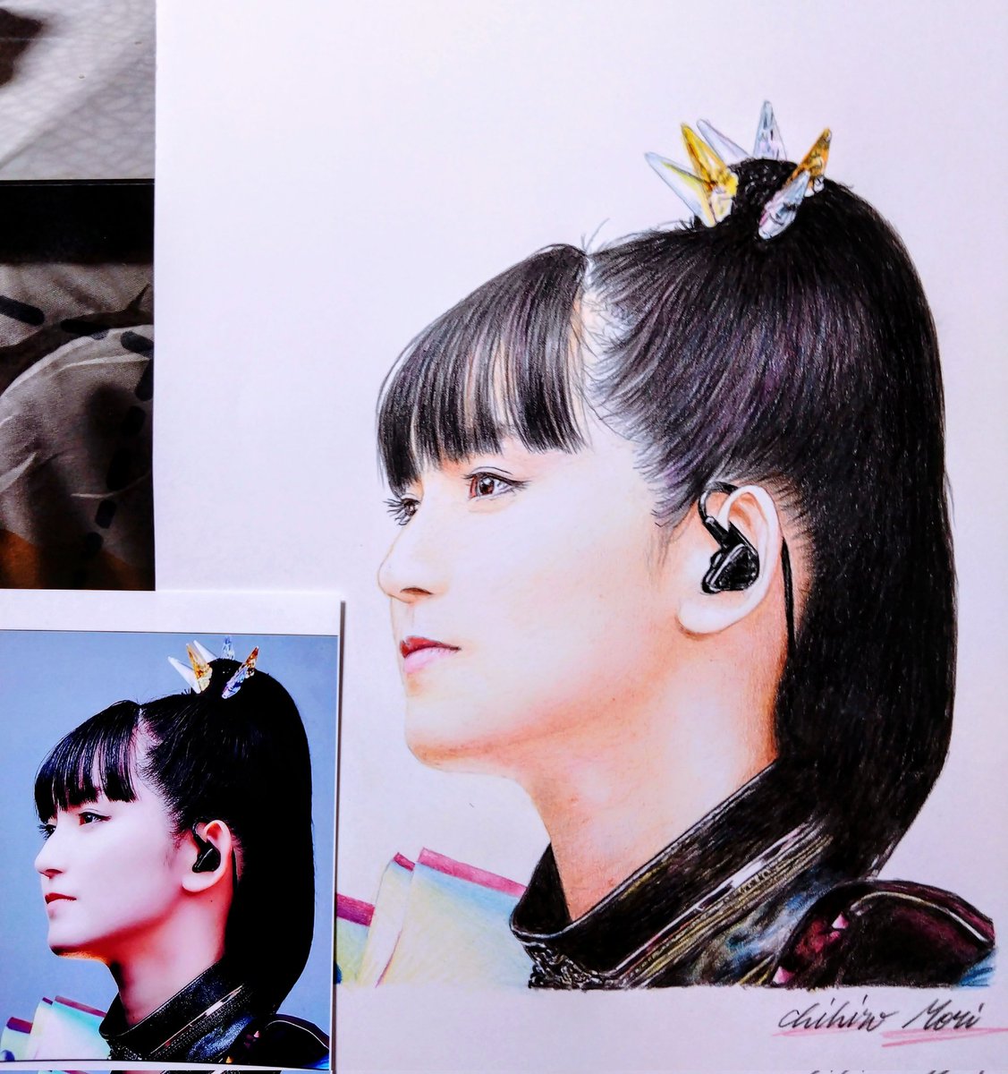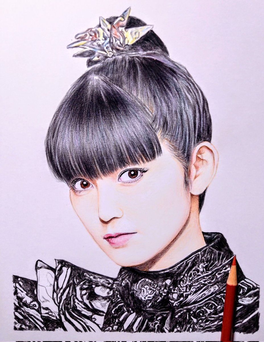描いた色鉛筆画です BABYMETALの、SUMETAL. 中元すず香さん🤘 MOAMETAL. 菊地最愛さん🤘 色鉛筆画です。A4ケント紙 絵の依頼承ります お問い合わせは、DMにてご連絡お待ちしています #BABYMETAL #肖像画 #色鉛筆