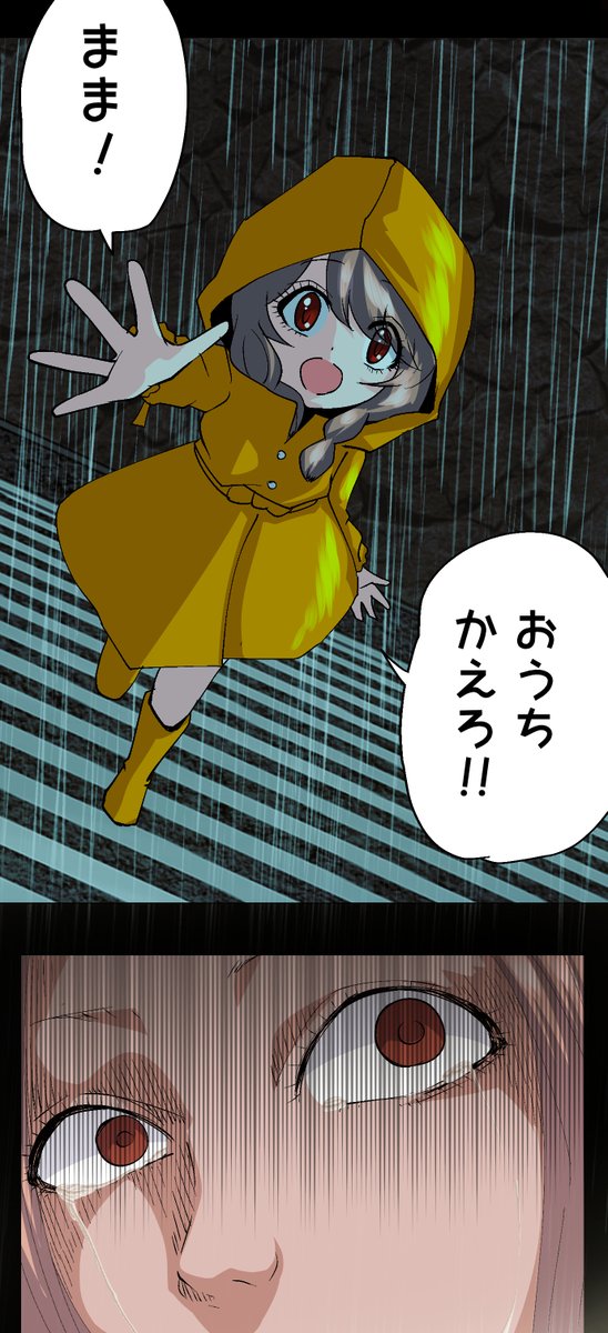 #肝潰しの夜 メリーさんと花子さんの怪談バトルについに決着が!?果たして勝者はどっちだ!◆幽霊が出るとウワサの横断歩道に幽霊を見に行く縁。そこにはレインコートの少女が佇んでいて……―― ▼第73夜 続・横断歩道の怪 nico.ms/mg728184 #ニコニコ漫画