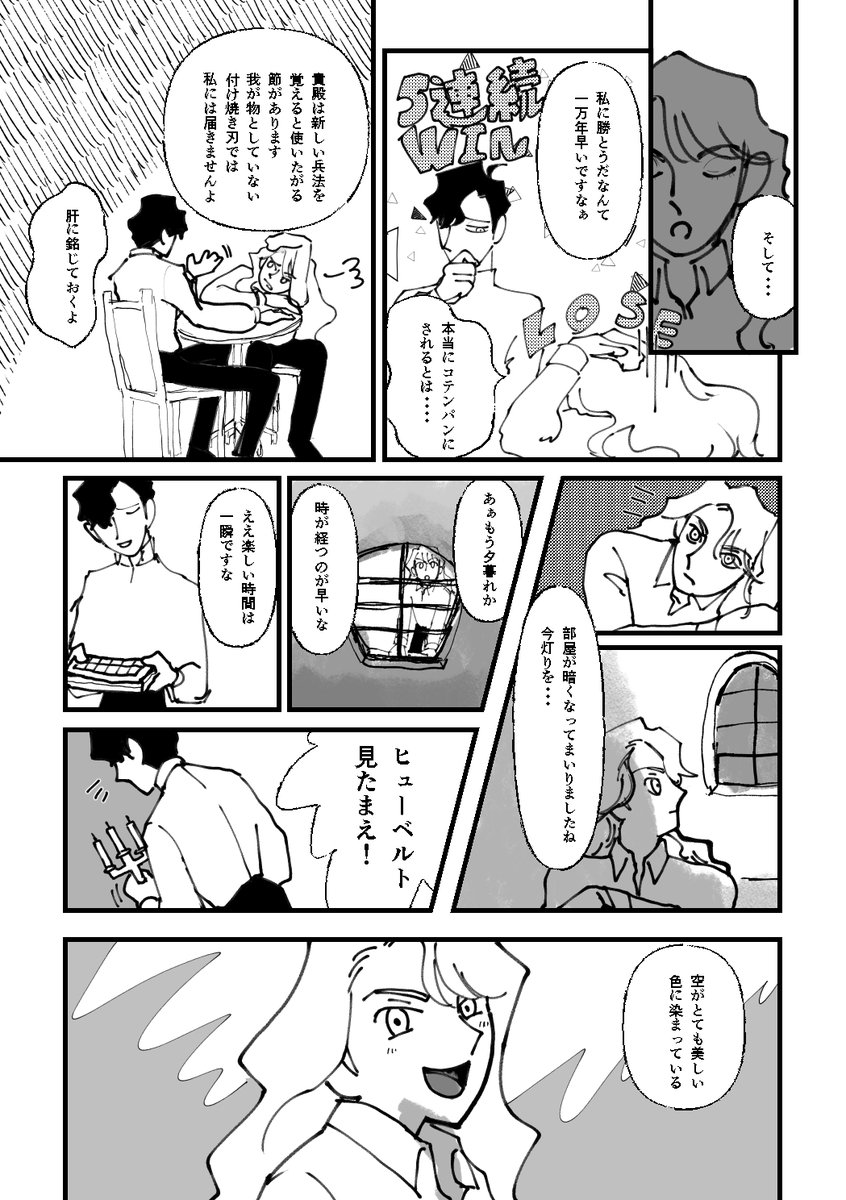 12.18刻印の誇り17/フェルヒュ新刊サンプル(p順番バラバラ) A5/表紙込44p/全年齢/500円 久々の休日をヒュの別荘でいちゃついてご飯食べて空見てのんびり過ごす本 ヒュ専属執事やメイドさんのモブがちょっと出ます 冒頭から10pくらいのサンプルはツリーでpixivのリンク貼ります〜! #肝胆愛照らす2022