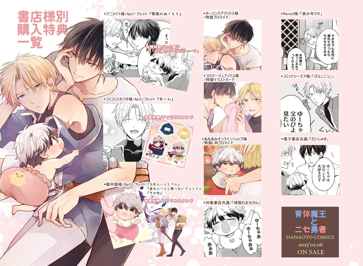 #育休魔王とニセ勇者 コミックスの『マオちゃんアクスタ/家族アクスタ/小冊子』など有償特典付きはこちらです。メイトさんの小冊子は現在電子のみ。 🍅コミコミスタジオ(comicomi-studio.com/goods/detail/1…) 🍅駿河屋(suruga-ya.jp/search?categor…) 🍅アニメイト小冊子付電子版(animatebookstore.com/products/detai…)