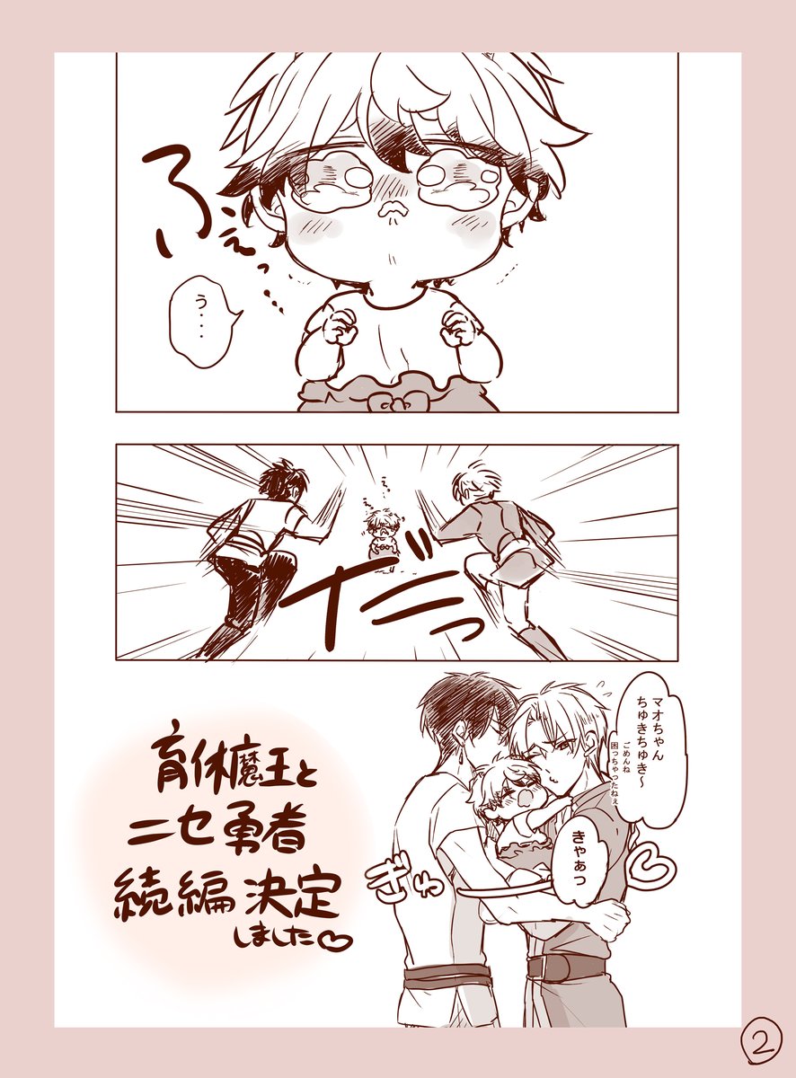 連日コミックス関連、続編決定についてのRTご協力や♡、ツイートなど本当にたくさん応援下さりありがとうございます!続編楽しみして下さっているお声をたくさん目にしてほっとした気持ちとやる気でいっぱいです☺️続編頑張ります💪✨ #育休魔王とニセ勇者