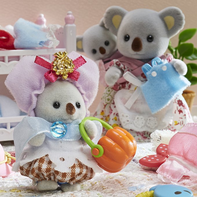 「じゅんびできた!」 頭にケープ、手にはハロウィンのバッグ、ドレスの上からズボンをはいているコアラのアデレード👚 「アデレード、こっちはどう…?」 「きょうはこれでおでかけする!」 ちゃんとお出かけできるかな? #シルバニアファミリー #シルバニア #育児あるある #シルバニア赤ちゃん