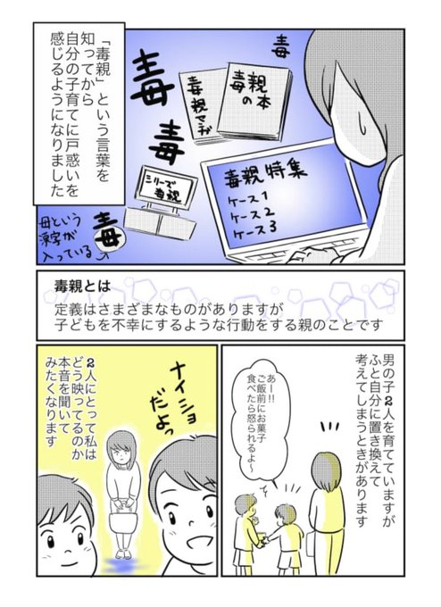 「毒親」を意識しすぎて子育てに戸惑いを感じるようになった話。数年前悩んでたときに描いた漫画です。 何が良くて何が悪いのか……結局わからない。それが答えなのかもしれません。#育児の日 #育児漫画 select.mamastar.jp/281495