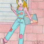 アクリルちゃん (2022年9月4日完成) お友達のジャイロさん(@eUwHqrQJF1wVeSp )の看板娘ちゃんをお借りしました #作品 #描かせていただきました #アクリル #女の子 #オーバーオール #ベレー帽 #背景ホンキのイッパツ描き