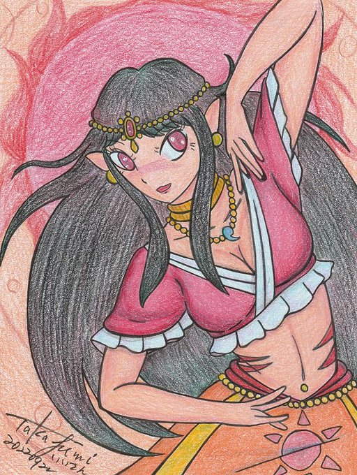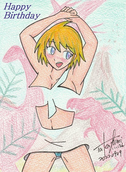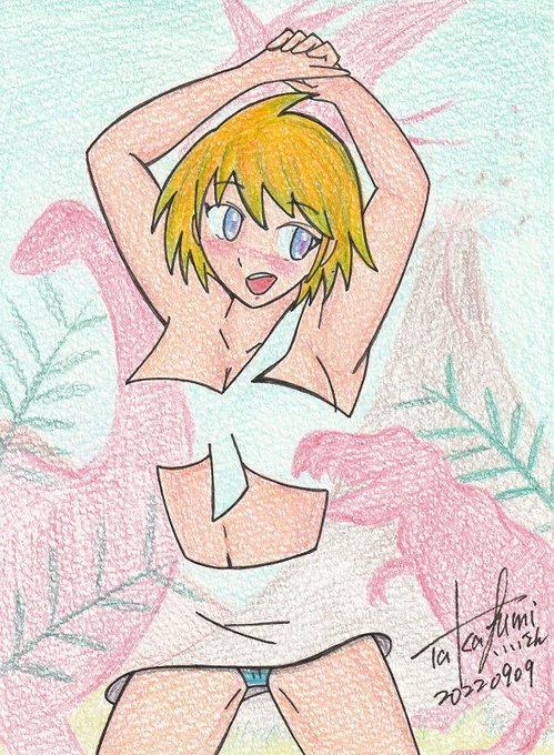 ジュリア姫 KEIさんお誕生日おめでとうございます #描かせていただきました #色鉛筆 #女の子 #ジュリア #ジュリア姫 #もしにん #水着 #恐竜 #背景ホンキのイッパツ描き pixiv.net/artworks/10127…