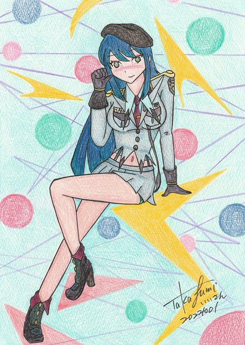 葉涙雛(はなだひな)ちゃん (2022年10月1日完成) みましっくすさん(@mimasix)ちの めっちゃめちゃ沢山の看板娘ちゃんの中の1人をお借りしました #作品 #色鉛筆 #描かせていただきました #国際秘密組織イーグル #ユニコーン #葉涙雛 #女の子 #制服 #軍服 #パンチラ #背景ホンキのイッパツ描き