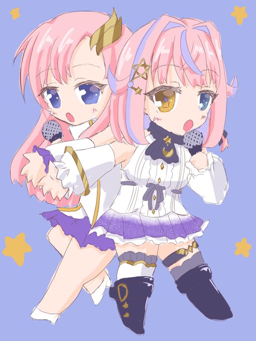 メン限にならない内にってことで。 即席クオリティ。 しかし令和にラクスを描くとは思ってなかったけど 並べたいな!と思ってしまったので。 カラーリングとか服のデザインとかなかなかの共通点が… #胡桃澤もも #魔法少女活動報告書