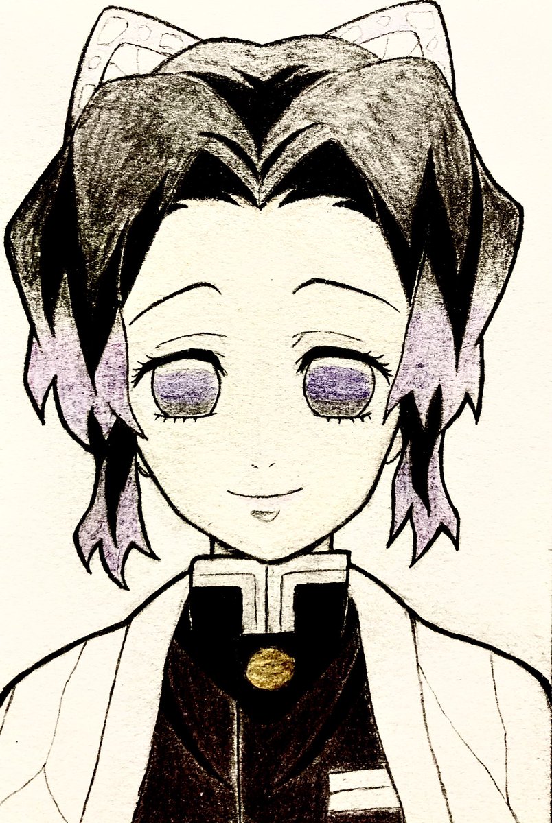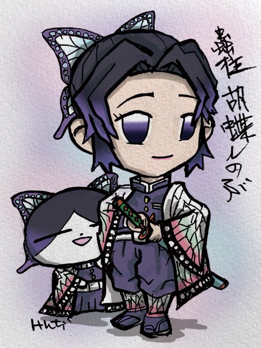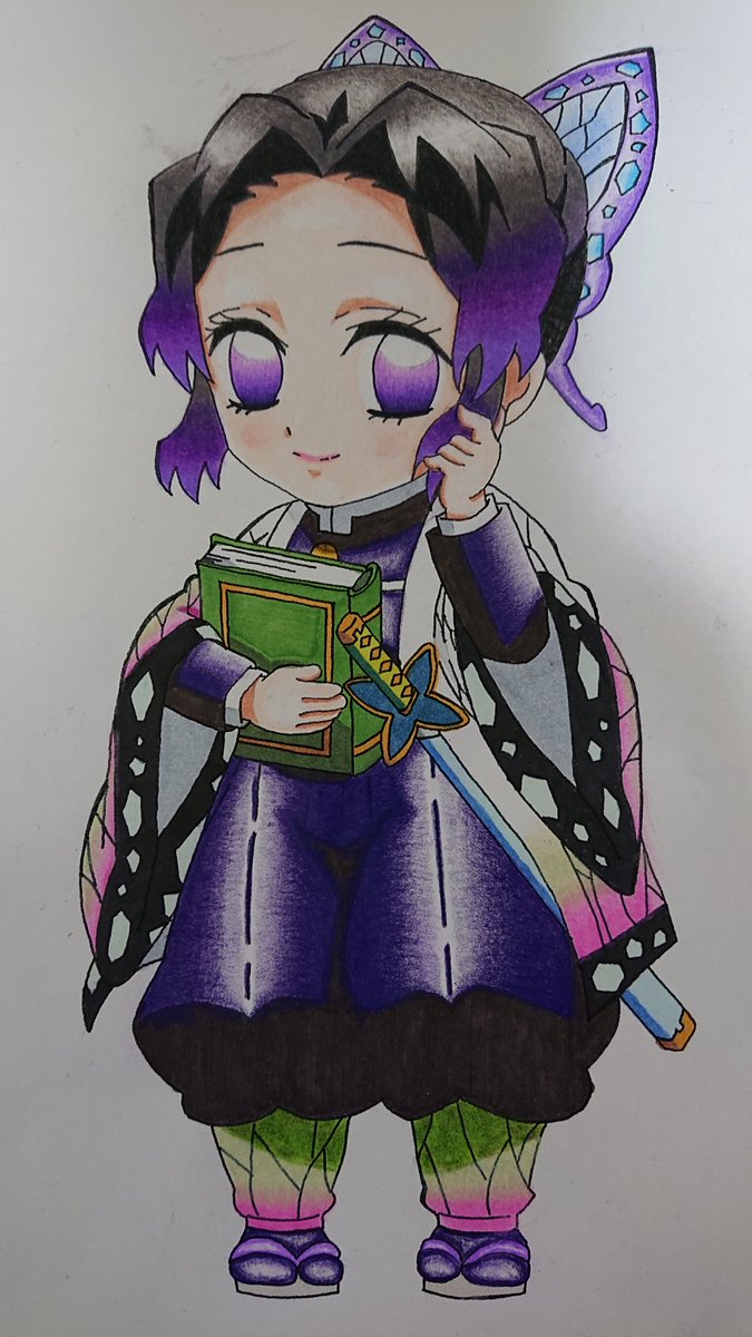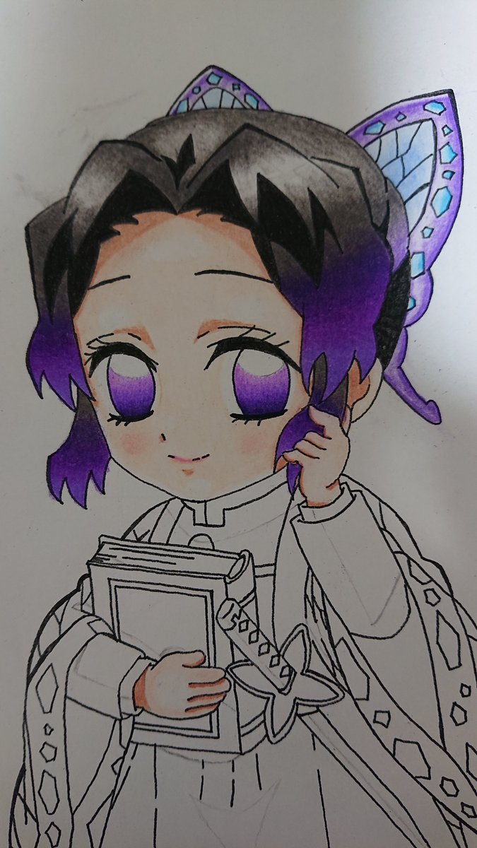 出来た(╹◡╹) やっぱしのぶさんは可愛い❤️✨ 私のタッチでスンマセン💦 後、コスプレはちねこくんも隣にw #鬼滅の刃 #胡蝶しのぶ #鬼滅の刃イラスト #胡蝶しのぶイラスト #イラスト好きな人と繋がりたい #イラスト #手描きイラスト