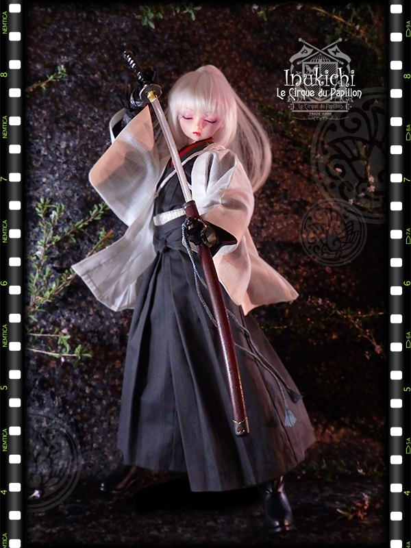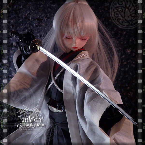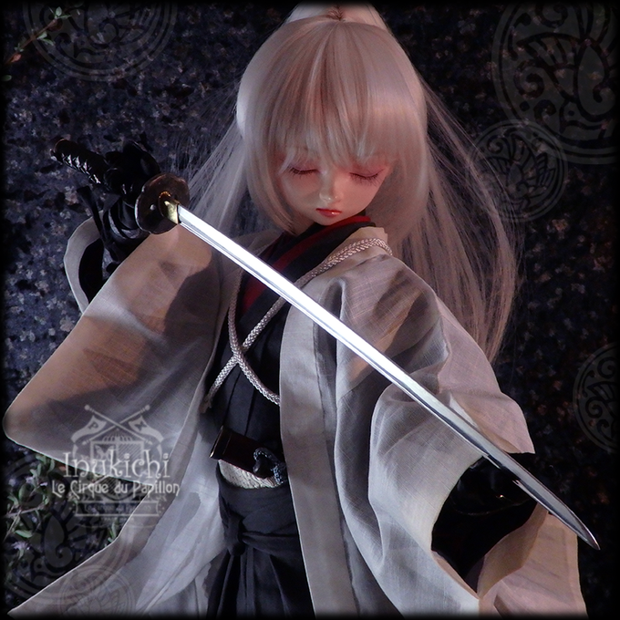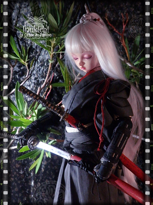 #今夜のドール撮影120分一本勝負 お題【 アングル:ななめ 】 [過去][既出]http://trico07.blog105.fc2.com/blog-entry-558… #handmade #miniature #superdollfie #日本刀 #脇差 #肥前忠広 #剣客小町 #武装ドール #銘犬吉