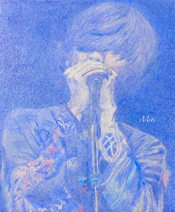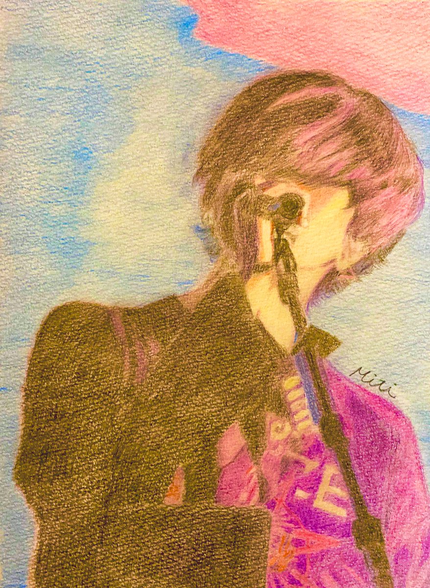 皆さんがお見せしてくれる各地のサイネージの映像、ライブに向けて「変身」が動き出しているんだなぁ、と心踊ります✨ 明後日のYouTubeMusic Weekendも楽しみ~💕 #米津玄師 #米津玄師2022TOUR変身 #脊椎がオパールになる頃 #色鉛筆画 #模写