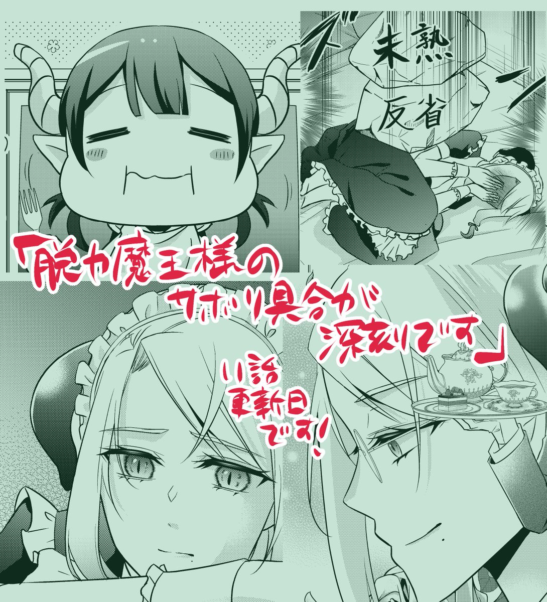 【お知らせ】本日11月25日(金)は小学館のモバMAN(他)にて『脱力魔王様のサボり具合が深刻です』の更新日です!😊 今回はライラ頑張るの回☕️🍰 魔王様を魅力でねじ伏せらるのか否かな11話です! モバMAN↓ csbs.shogakukan.co.jp/book?book_grou… 各ネット書店↓ shogakukan.co.jp/purchase/digit… #脱力魔王様