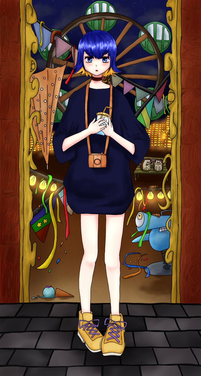 脳裏上のクラッカー好きだからね〜!!! バケツで髪全部真っ青になったけどこれはこれでおしゃれっしょ!! 文字入れが思ったより難しかったけど上手くいったかな? パステルカラー好きだからめっちゃ自己満できたぁ〜うひぃ(*°∀°)=3 #ずとまよファンアート #脳裏上のクラッカー #dotpict