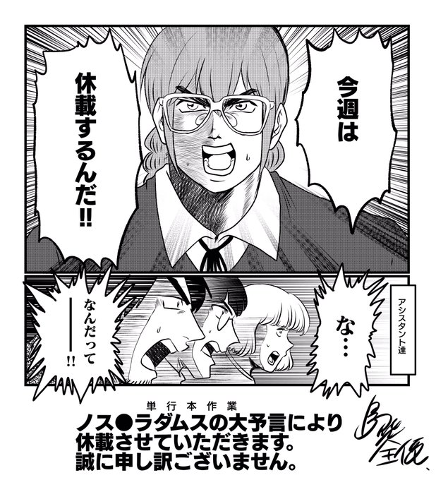 今週の腸よ鼻よは単行本作業により休載です!!!!誠に申し訳ございませんが休載イラストで勘弁してください!!!!!!!! #腸よ鼻よ #GANMA! share.ganma.jp/magazines/37b6…