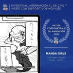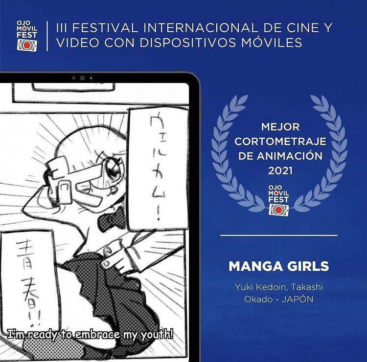 ペルーで開催されたOjo Móvil Fest 2021にて、作画したアニメ『マンガガールズ』が、アニメ部門でグランプリ貰いましたー! トロフィーは、ペルーから送ってくれるらしいっ! #OjoMóvilFest2021 #マンガガールズ #indie_anime #絵描きさんと繋がりたい #イラスト #オリキャラ #自作アニメ #art